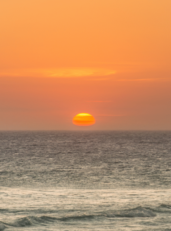 Para o pôr do sol, temos duas opções que costumam encantar quem viaja com a gente: o passeio de quadriciclo, que passa por mirantes incríveis, ou uma caminhada leve até a Praia Grande, onde o sol se põe direto no mar e transforma o céu em tons dourados.